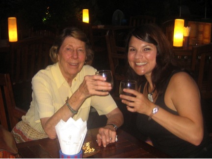 Moni and Daphne, best friends and traveling partners, traveled on my 2013 Thailand tour. “You’re in our group?” an astonished Moni asked as I sat down at the breakfast table at the Tawana Hotel in Bangkok. I glanced around the table and noticed that I was by far the youngest person seated. I was immediately impressed by Moni and Daphne’s composure and sense of humor, in light of Thailand’s debilitating humidity. In Siem Reap, Cambodia, we had a couple of hours to kill before dinner, so Moni suggested we drop in for a drink at Raffles Hotel. I’d heard of Raffles in Singapore, but wouldn’t have dreamt of entering such a refined establishment on my own. It lived up to its reputation. These ladies have been such supporters of mine, constantly emailing to stay in contact.